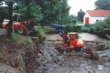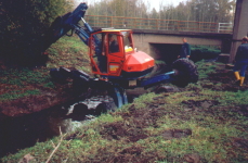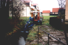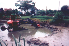 Die eingesetzte Technik: . Stelzenbagger mit tauchbarer Kies-/ Schlammpumpe . Wattiefe bis 1,60 m . Förderleitung NW 150 mm . Korndurchgang 60 mm . biologisch abbaubare Hydrauliköle Art der Fördermedien: . alle pumpfähigen Stoffe Vorteile: . durch den Anbau am Stelzenbagger (Ge- rät schwimmt nicht) kann auch bei nie- drigem Wasserstand, ca. 40 cm, gearbei- tet werden. . der Bagger ist mit Sumpftatzen ausge- rüstet und kann da- durch ohne Hilfs- mittel (Kran, Wege- befestigung) in un- wegsamen Gelände den Einsatzort, auch über Böschungen hinweg, erreichen